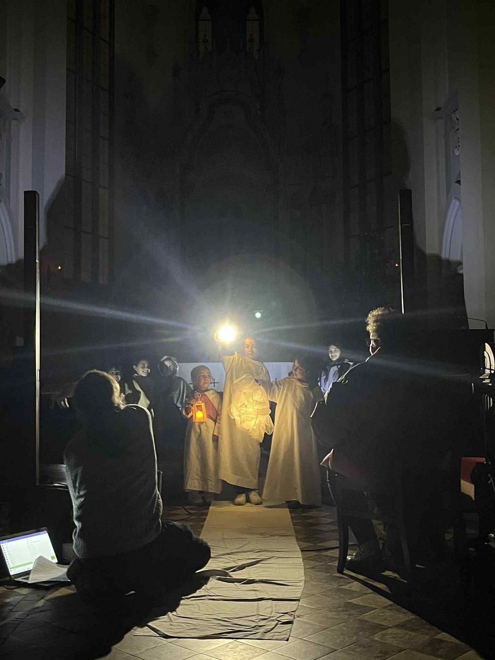 Světlo Trojice přichází a definitivně zahání Temnotu. Paškál hoří, světlo se rozdává všem přítomným a čekání vrcholí radostným zpěvem.